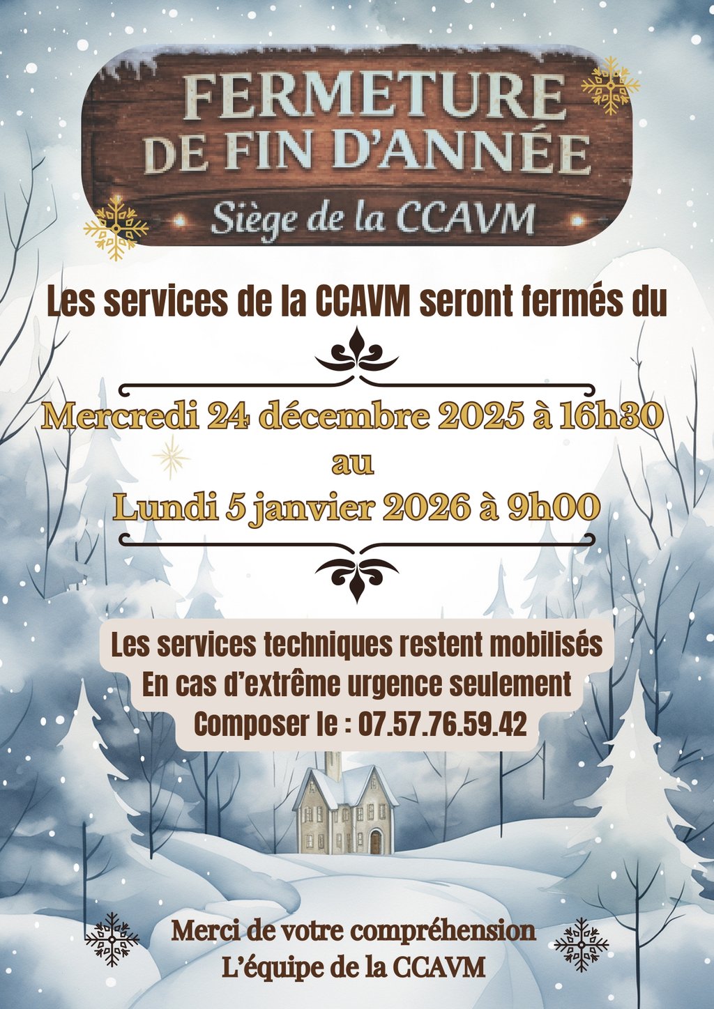 đ FERMETURE EXCEPTIONNELLE DU SIĂGE DE LA CCAVM POUR LES FĂTES đ