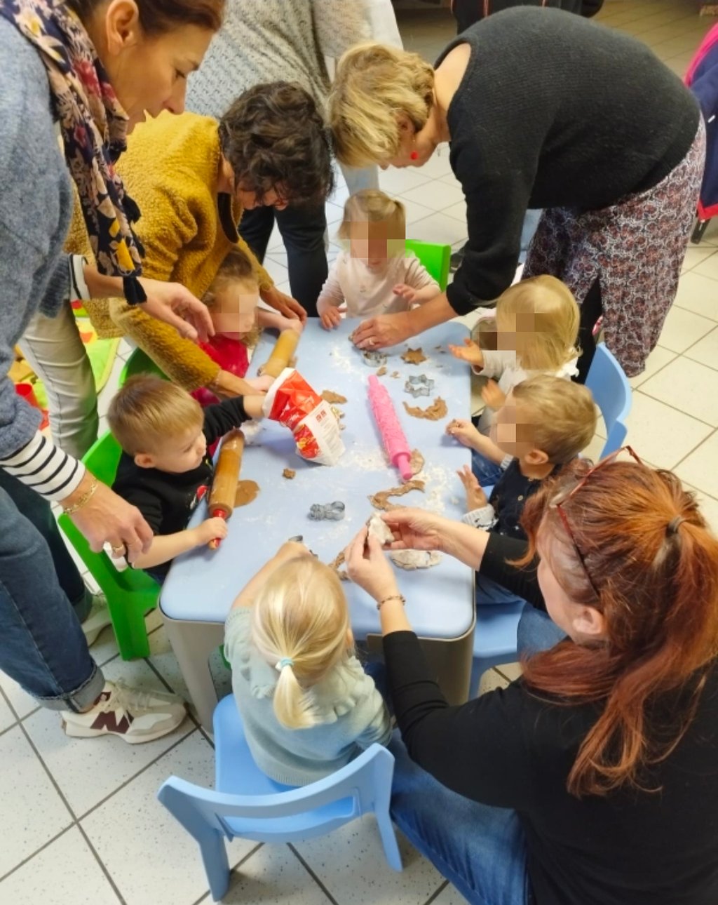 Les enfants, accompagnés des assistantes maternelles, se sont amusés à mettre la main à la pâte 🤲🎄 dans une ambiance pleine de rires et de bonne humeur 😊