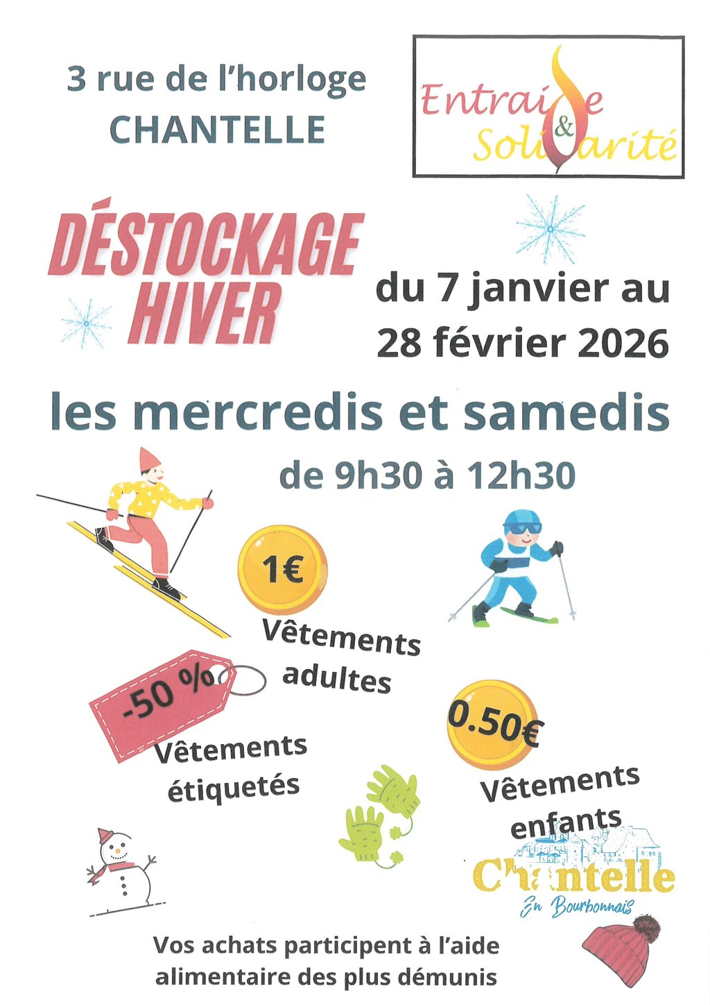 Entraide et Solidarité organise un déstockage d'Hiver les mercredis et les samedis du 07 janvier au 28 février 2026
