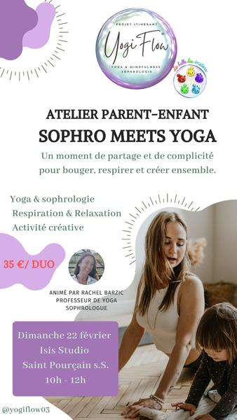 Moment de partage et de complicité pour bouger, respirer et créer ensemble ! Atelier mêlant yoga, sophrologie, respiration, relaxation et activité créative. Animé par Rachel Barzic, professeure de yoga et sophrologue.