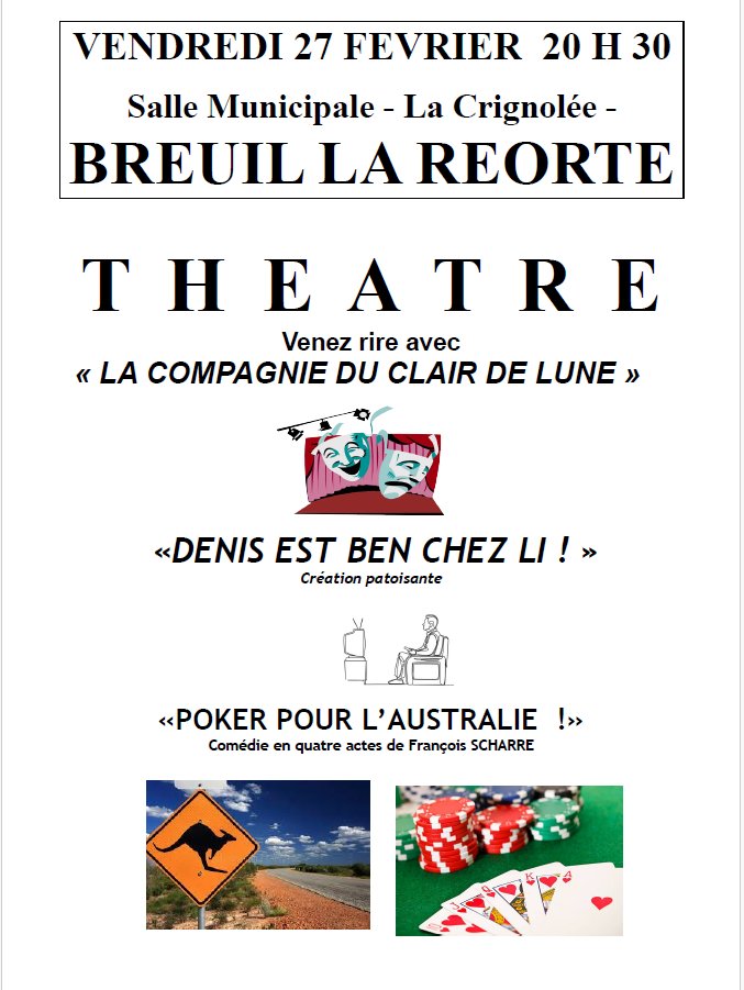 Vendredi 27 février à 20h30 à la salle municipale de Breuil-la-Réorte.