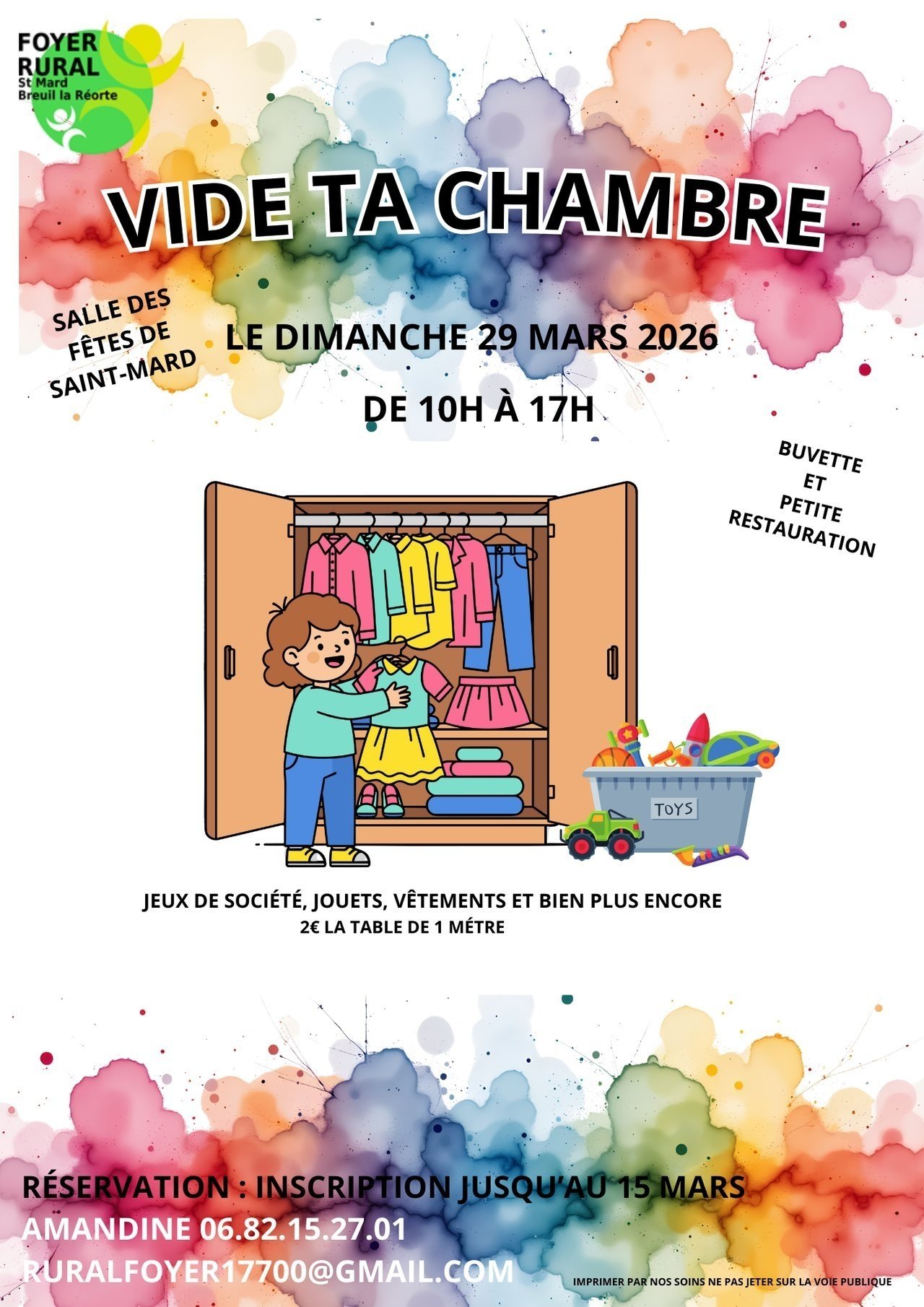 📅 Le dimanche 29 mars de 10h à 17h, organisé par le Rural Foyer de Saint-Mard à la salle des fêtes