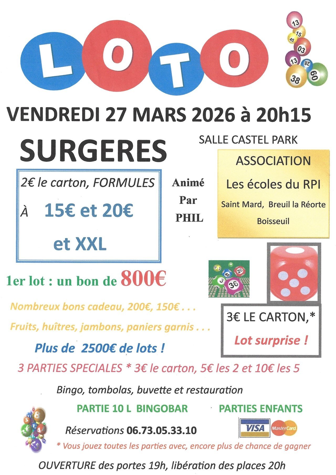 La salle Castel Park de Surgères accueillera un loto organisé par les écoles du RPI Saint-Mard, Breuil-la-Réorte et Boisseuil.