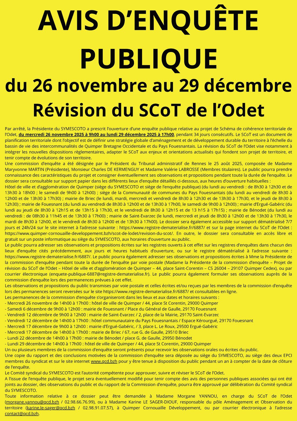 AVIS D'ENQUÊTE PUBLIQUE : RÉVISION DU SCOT DE L'ODET