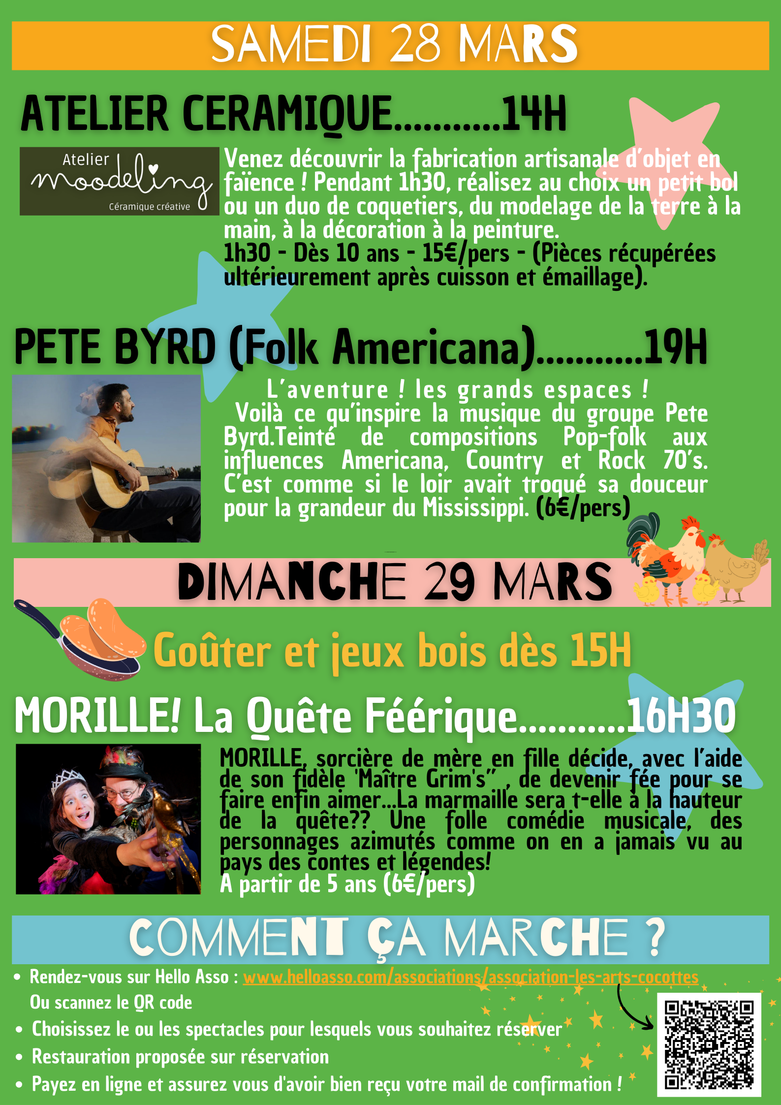 En bref, les Arts Cocottes organisent des événements culturels, musicaux, artistiques, et très festifs, pour tous.