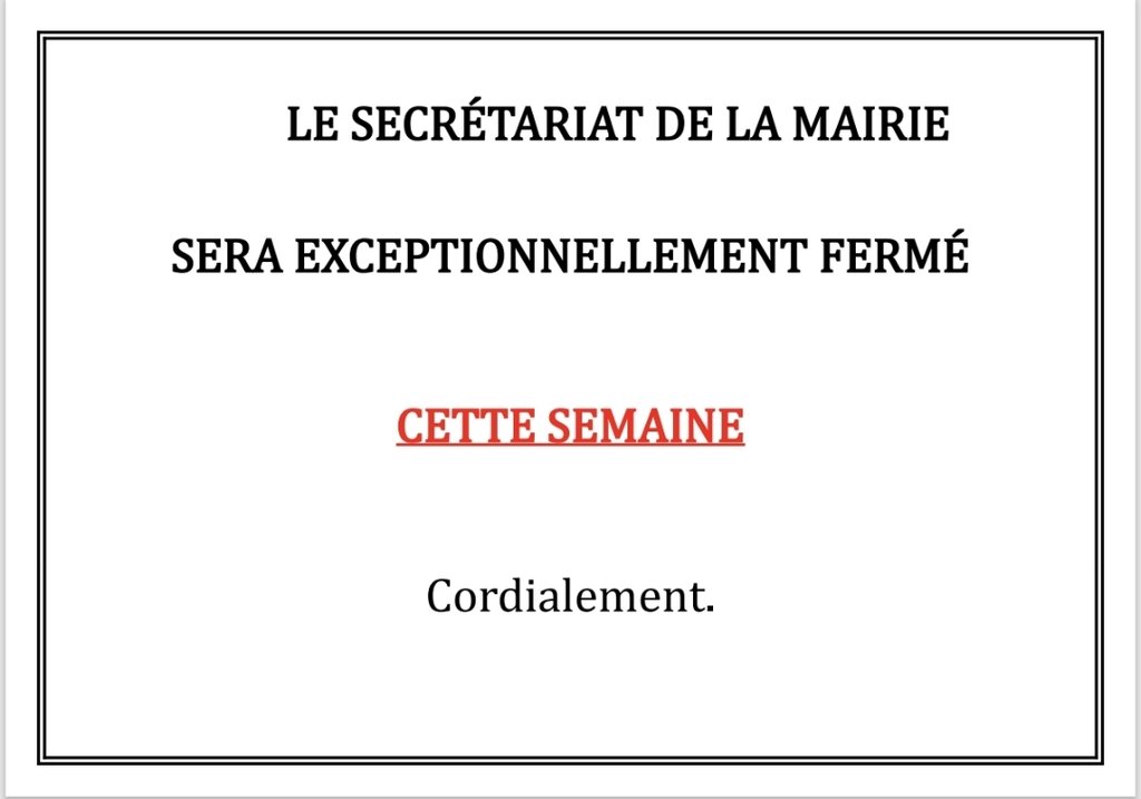 FERMETURE EXCEPTIONNELLE DE LA MAIRIE
