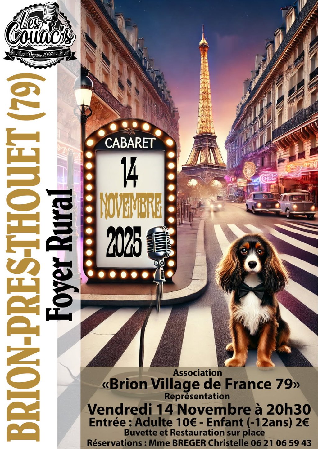 L'association des Brion de France organise un spectacle cabaret le vendredi 14 novembre 2025 à 20h30 au foyer rural de Brion