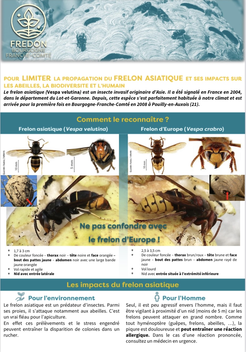 Si vous découvrez un nid signalé le sur intra-muros et sur le site Fredon Bourgogne Franche Comté.