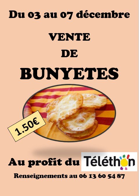 Plusieurs bénévoles d'associations et de parents d'élèves du village proposent une vent de bunyetes traditionnelles au profit du Téléthon.