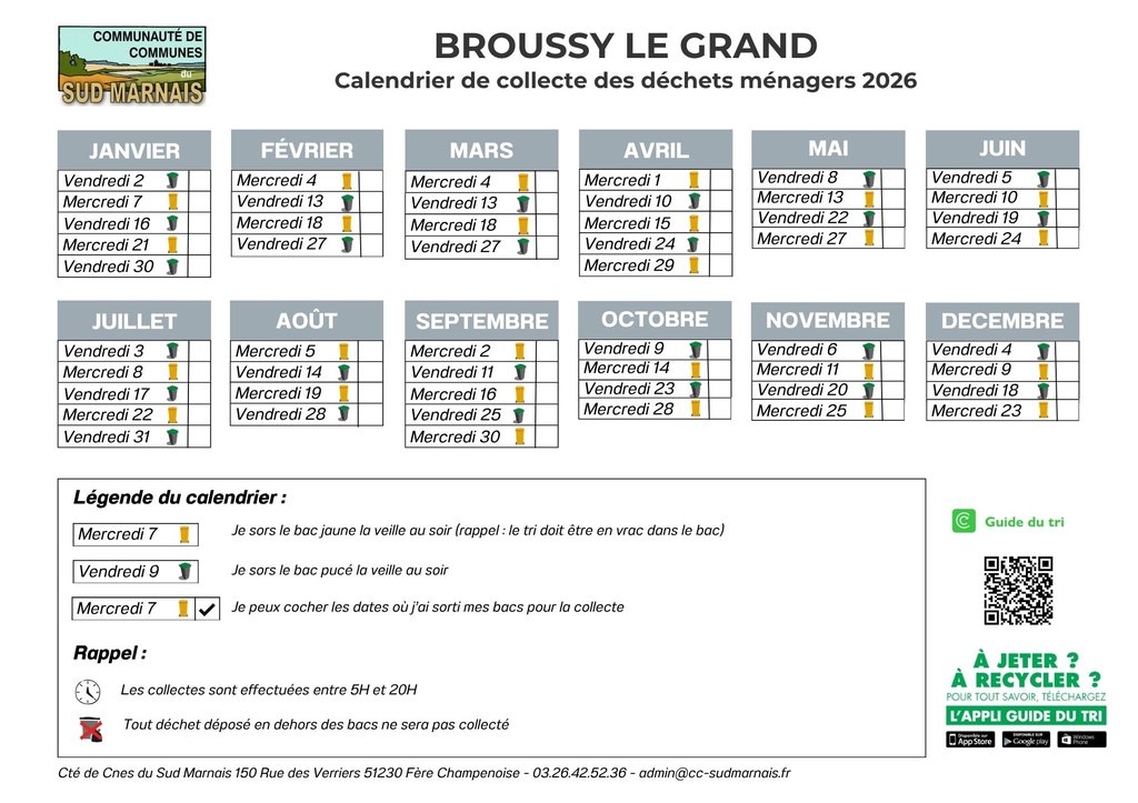 CALENDRIER DE COLLECTE DES DÉCHETS MÉNAGERS 2026