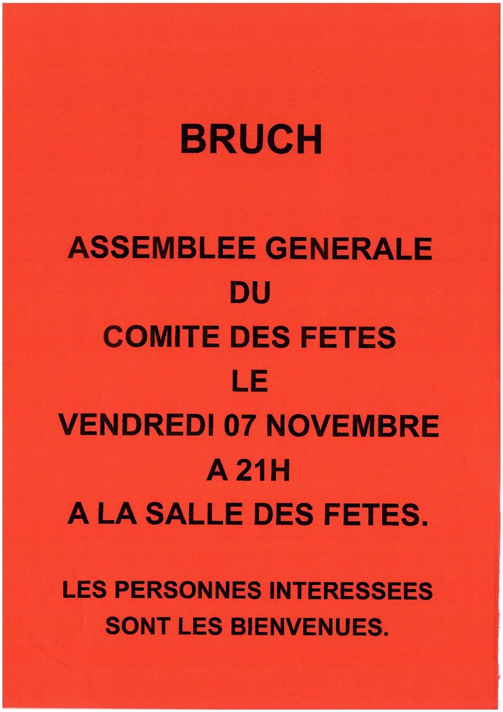 ASSEMBLEE GENERALE DU COMITE DES FETES DE BRUCH