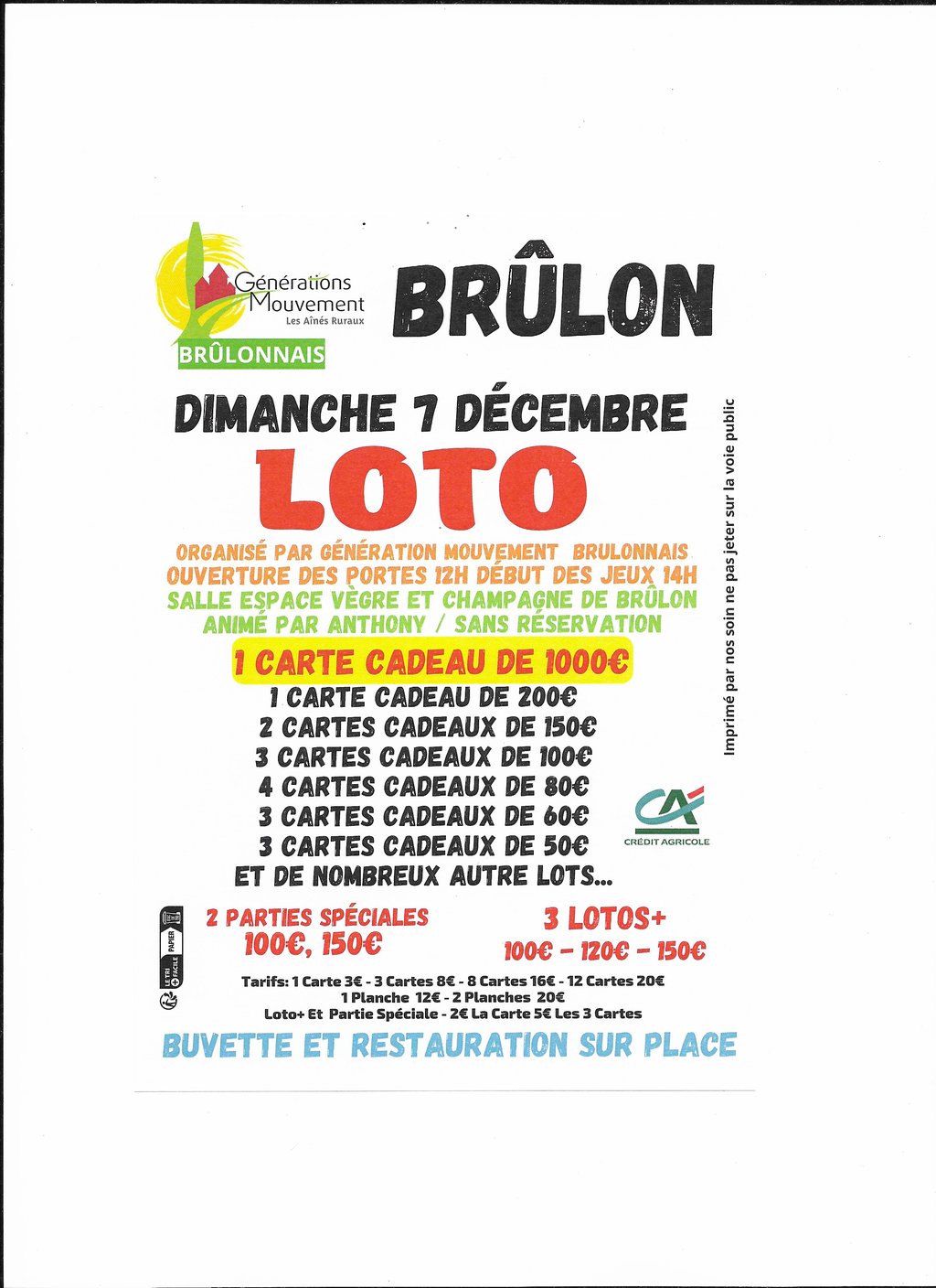 GÉNÉRATIONS MOUVEMENT BRÛLONNAIS LOTO