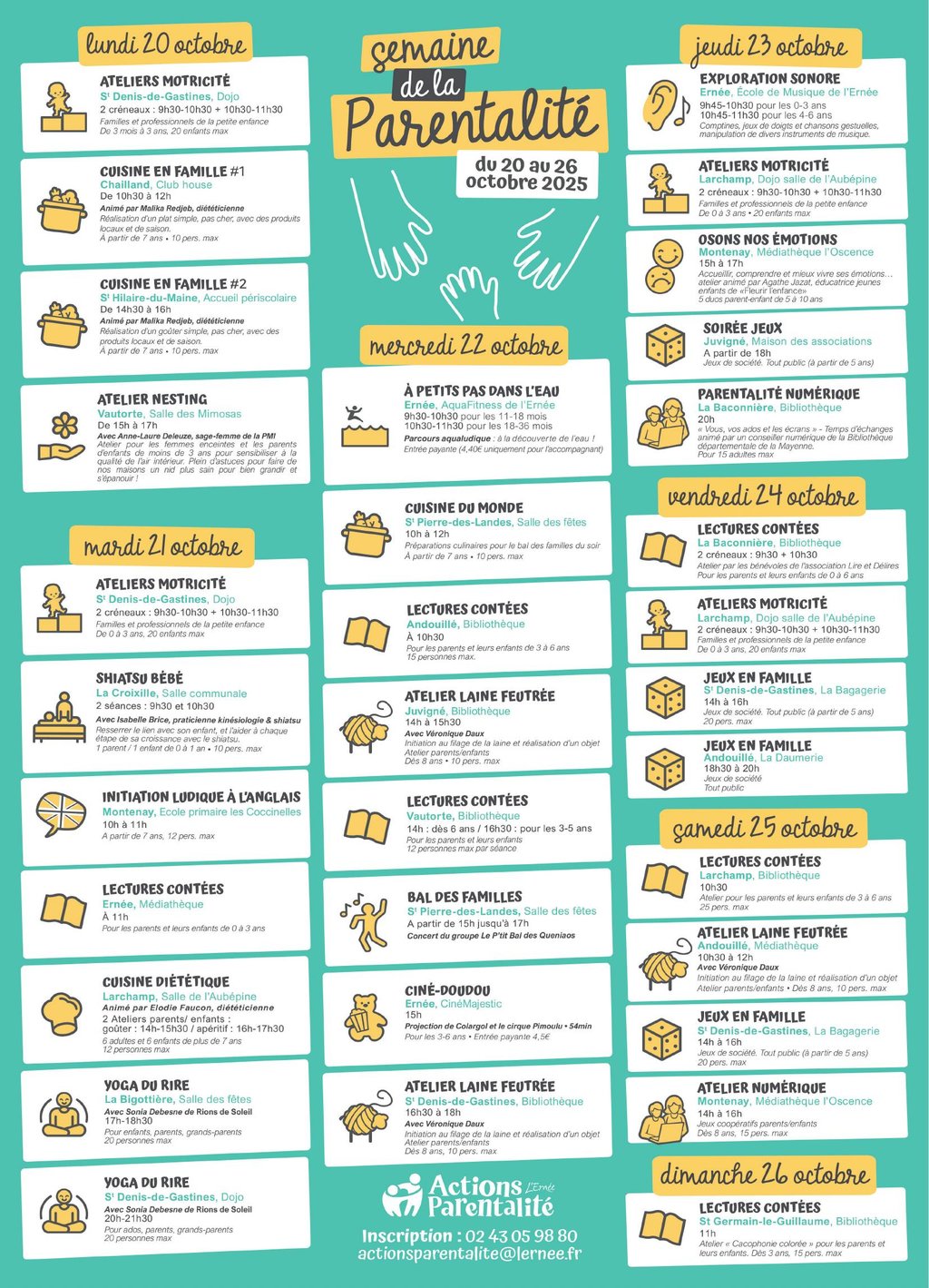 Sur inscription : 02 43 05 98 80 ou actionsparentalite@lernee.fr