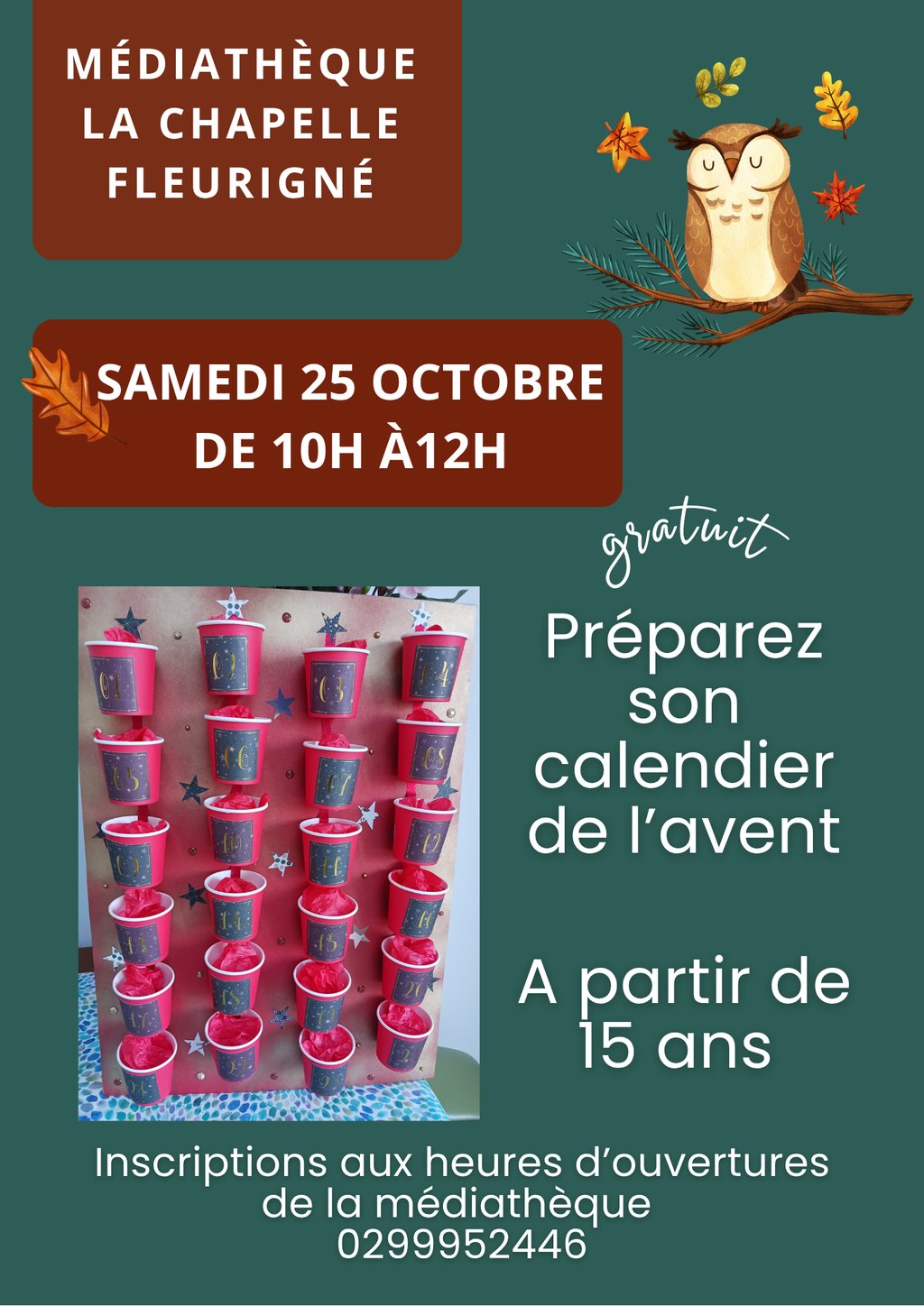 La médiathèque de La Chapelle-Fleurigné organise, le samedi 25 octobre de 10h à 12h, une animation " préparez son calendrier de l'avent"