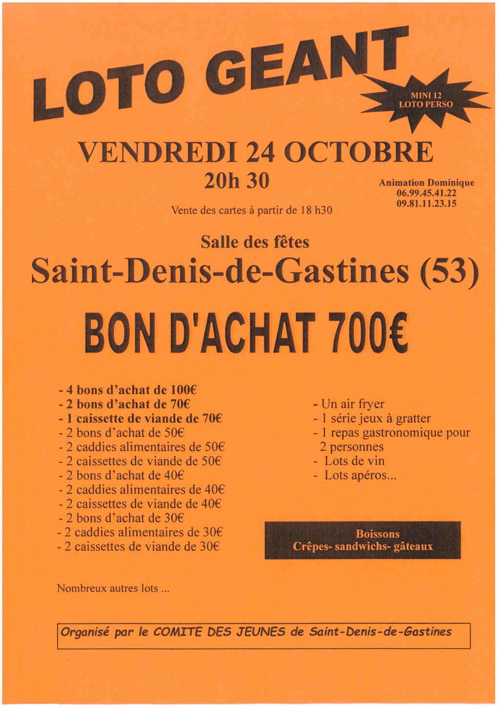 - Organisé par le Comité des Jeunes de Saint Denis de Gastines