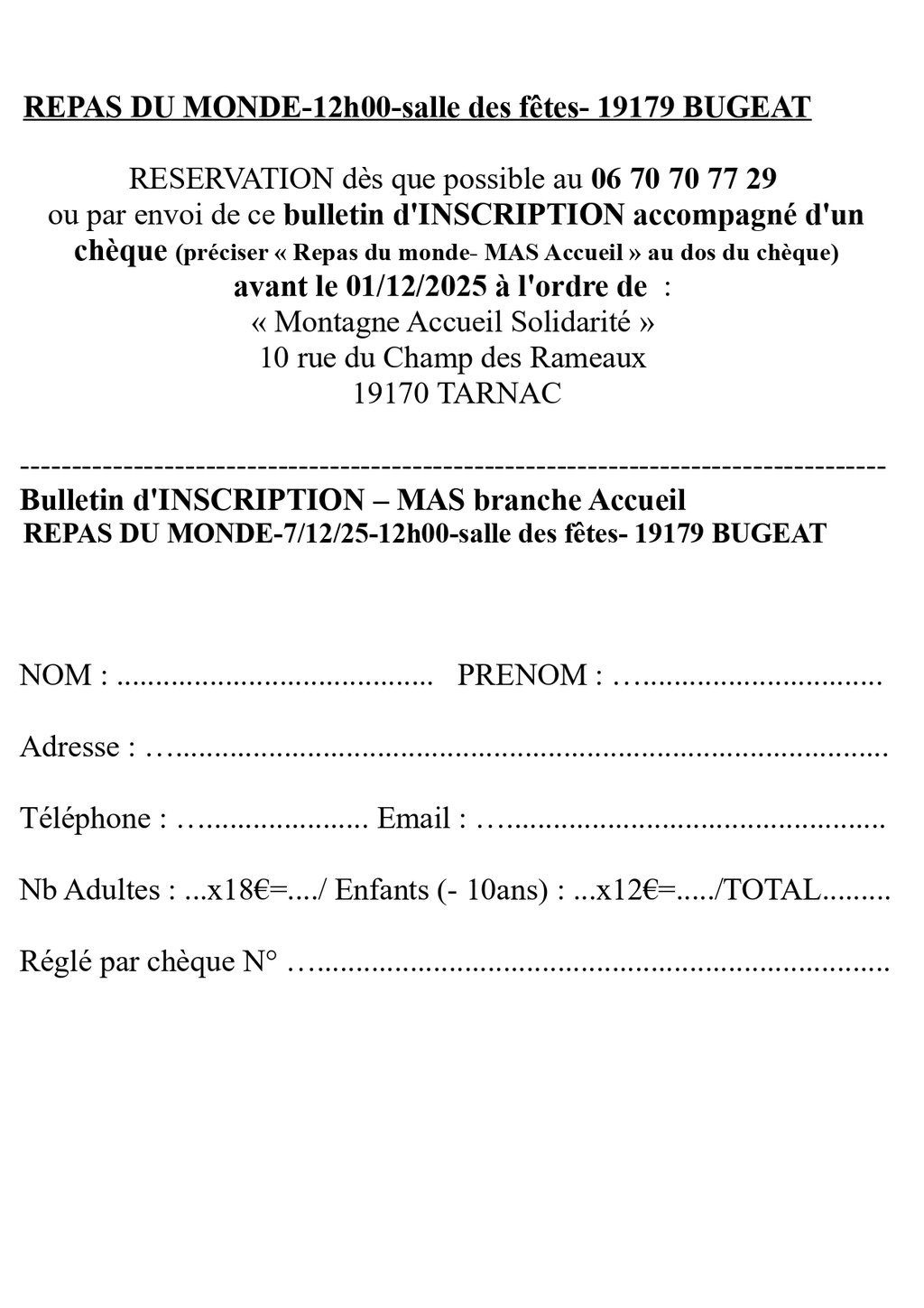 Montagne Limousine Accueil Solidarité organise un Repas du Monde,festif ouvert à tous, avec animation musicale. Cet événement a pour but de cultiver du lien, en soutien aux personnes exilées en situation de précarité.
