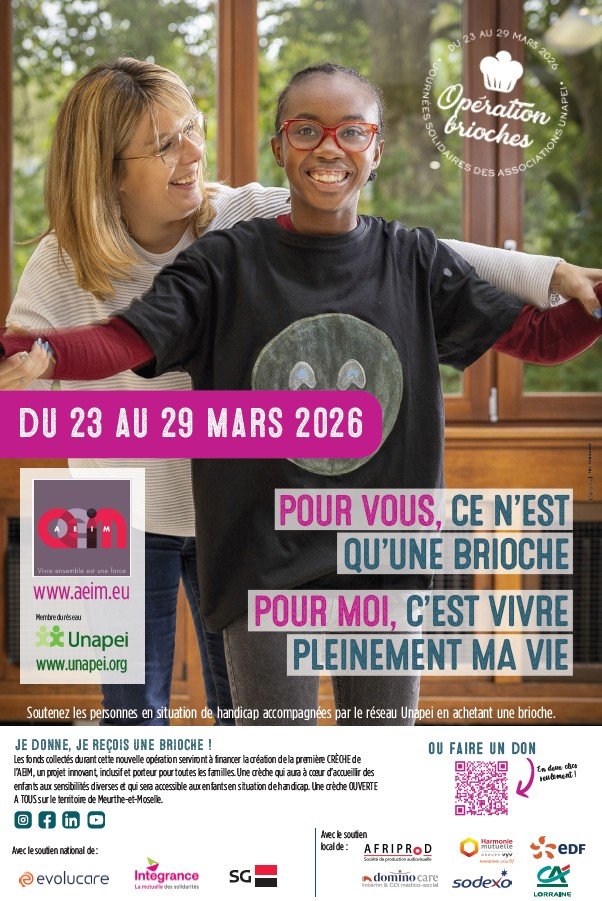 Les fonds collectés durant cette nouvelle opération serviront à financer la création de la première CRÈCHE de l’AEIM, un projet innovant, inclusif et porteur pour toutes les familles. Une crèche qui aura à cœur d’accueillir des enfants aux sensibilités diverses et qui sera accessible aux enfants en situation de handicap. Une crèche OUVERTE A TOUS sur le territoire de Meurthe-et-Moselle.