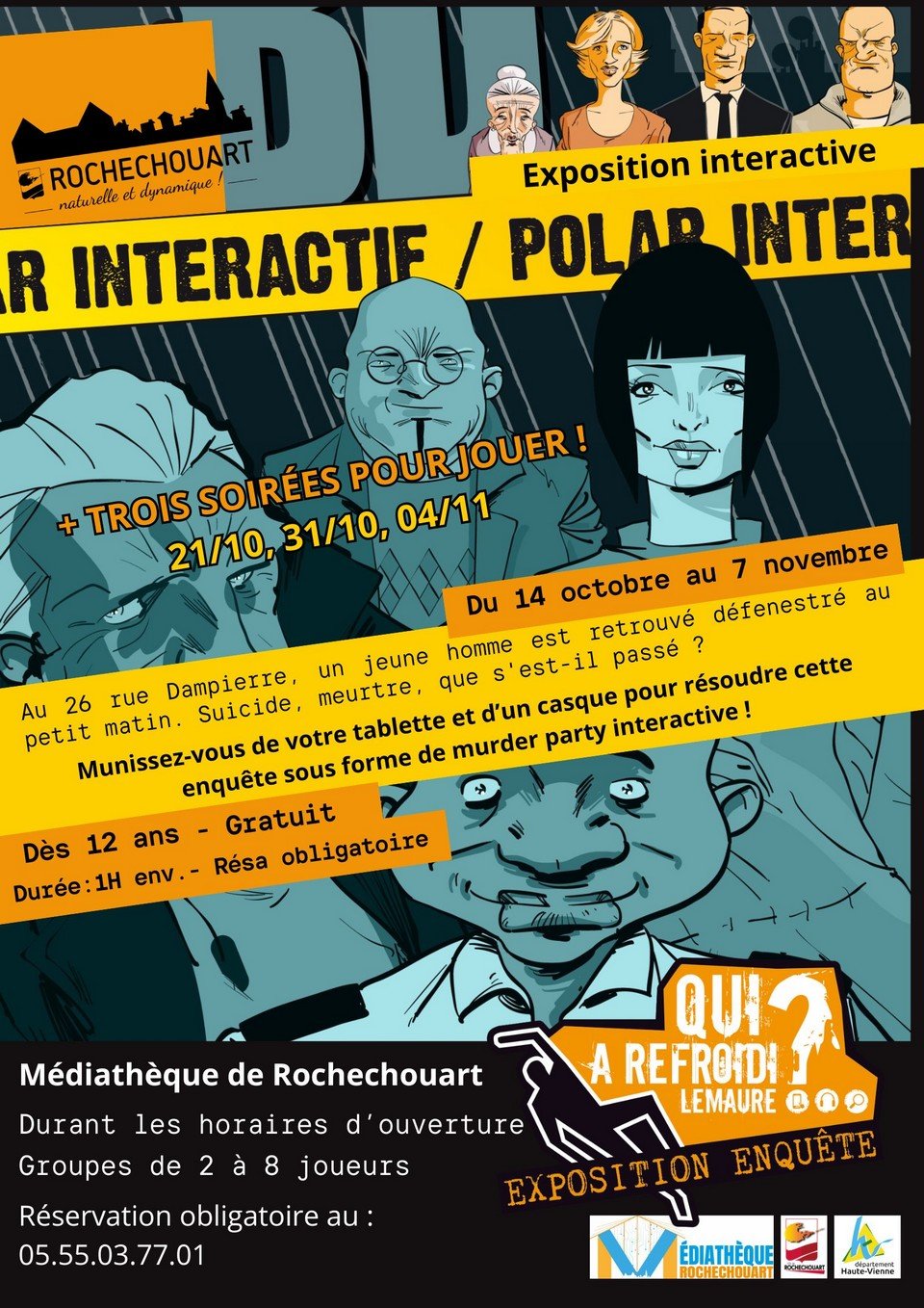 - Accessible pendant les heures d’ouverture de la médiathèque + 3 soirées (21/10, 31/10 et 04/11)