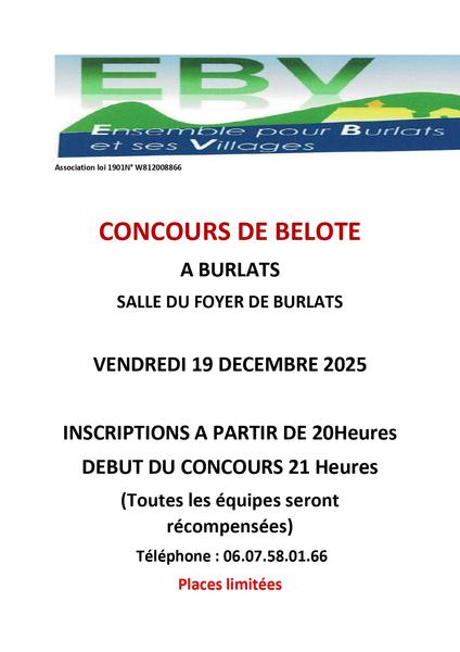 Rejoignez nous pour ce concours de belote ! Chalengez vos adversaires et montrez votre talent ! Amusement et bons moments garantis. Inscriptions à partir de 20 heures. Toutes les équipes seront récompensées.