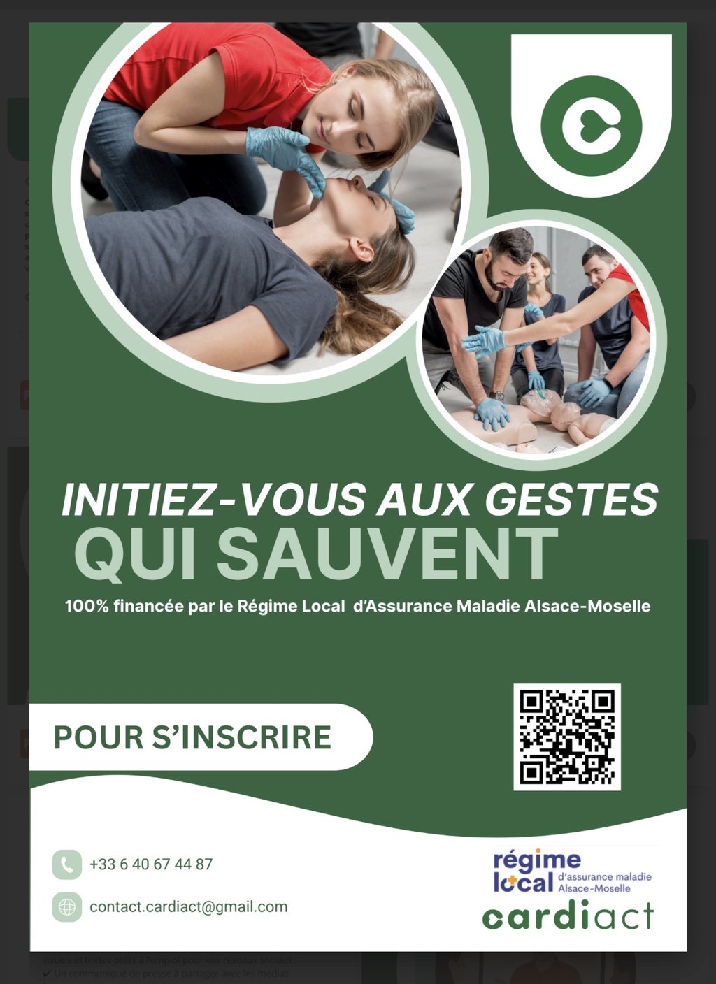 La commune s'associe au Régime Local d'Assurance Maladie d'Alsace-Moselle et à l'association CardiAct pour vous proposer des webinaires gratuits sur les gestes qui sauvent.