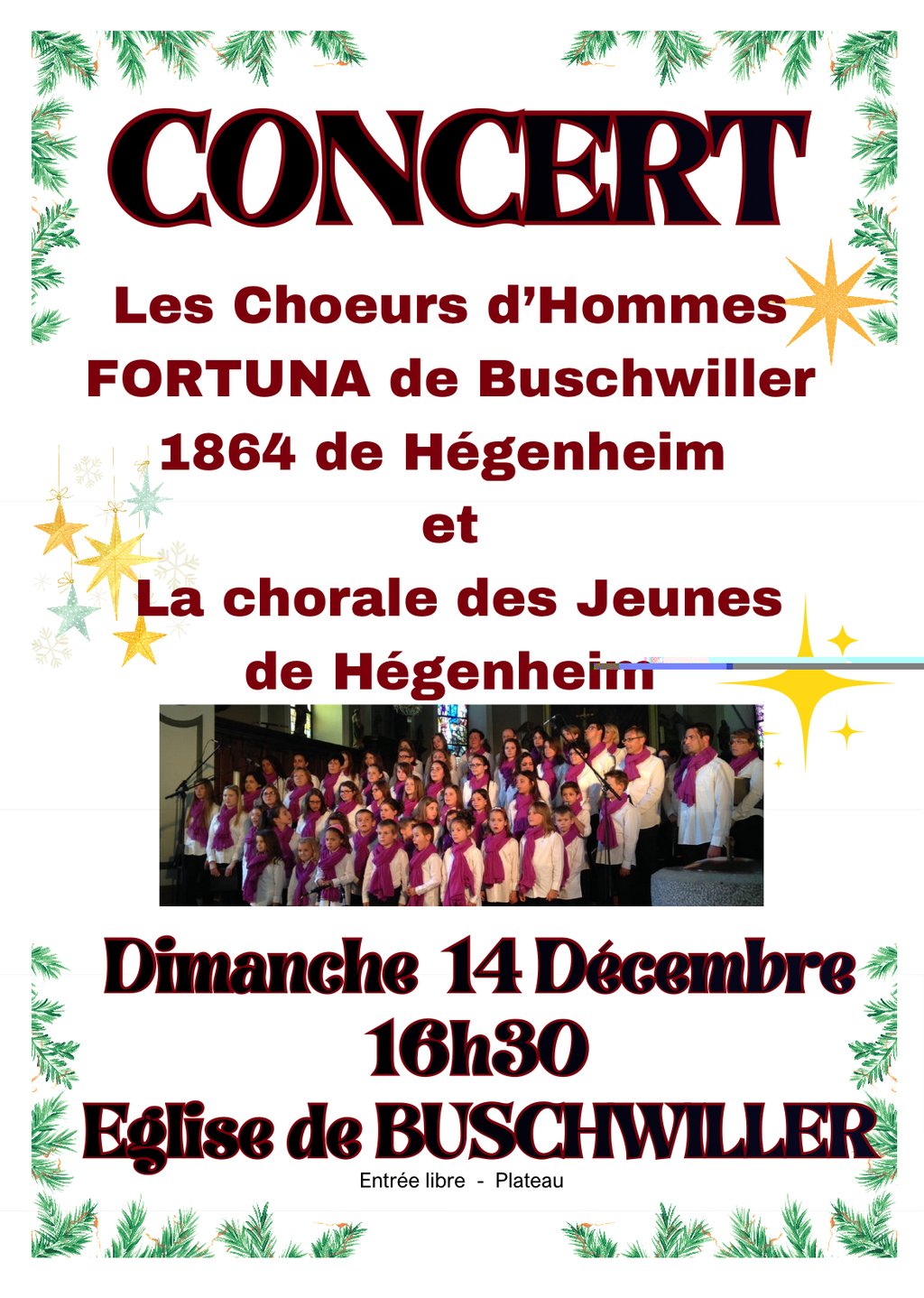 Les Cœurs d'Hommes FORTUNA et la Chorale des Jeunes espèrent vous voir nombreux le 14 décembre 16h30 à l'église de Buschwiller.