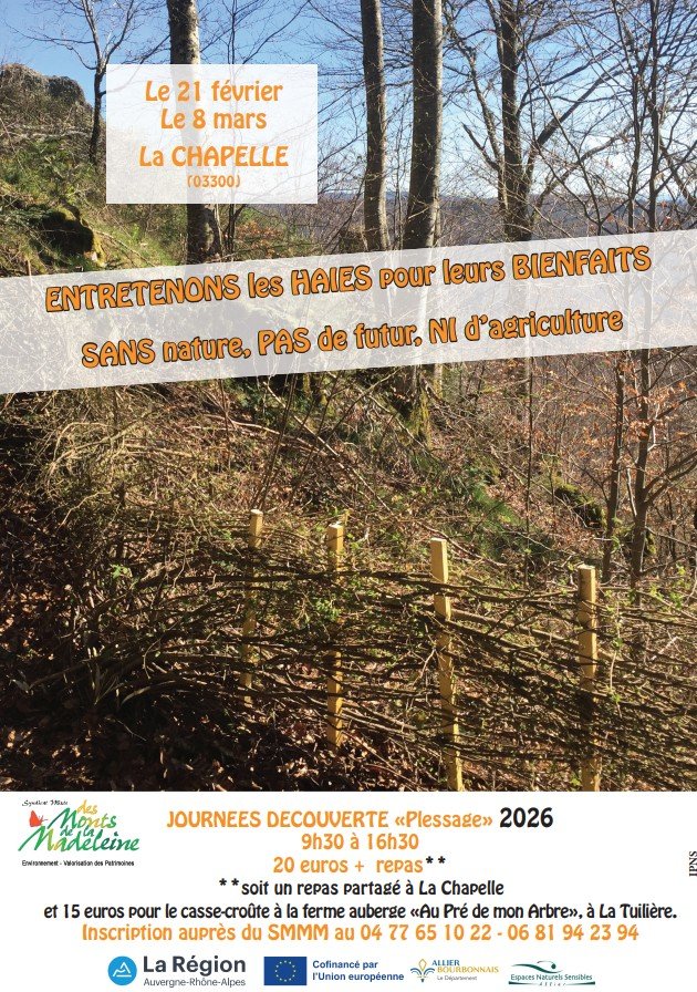 Vous ne connaissez pas c'est le moment et ce sera votre moment car vous pouvez venir quand vous voulez, rester le temps que vous voulez, regarder, pratiquer, échanger avec l'équipe expérimentée de plesseurs des Monts de la Madeleine... entre 9h30 et 12h, à Pré Jouancet, commune de St Nicolas des Biefs (46°02'29.6"N 3°46'42.0"E).