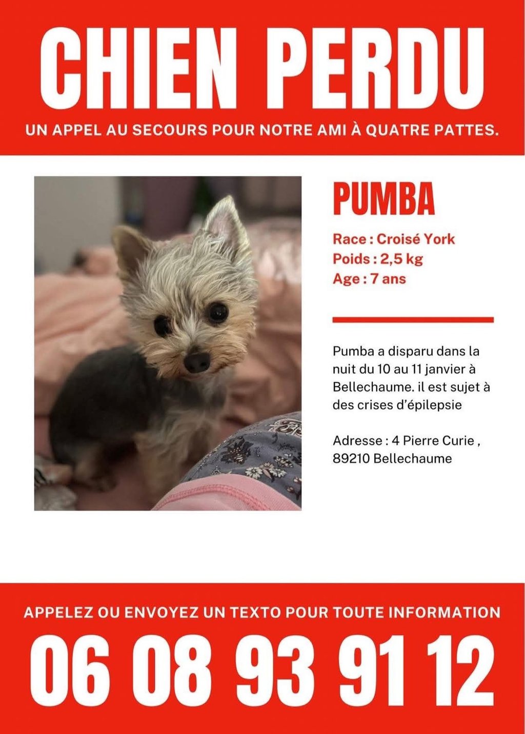 Chien perdu Bellechaume