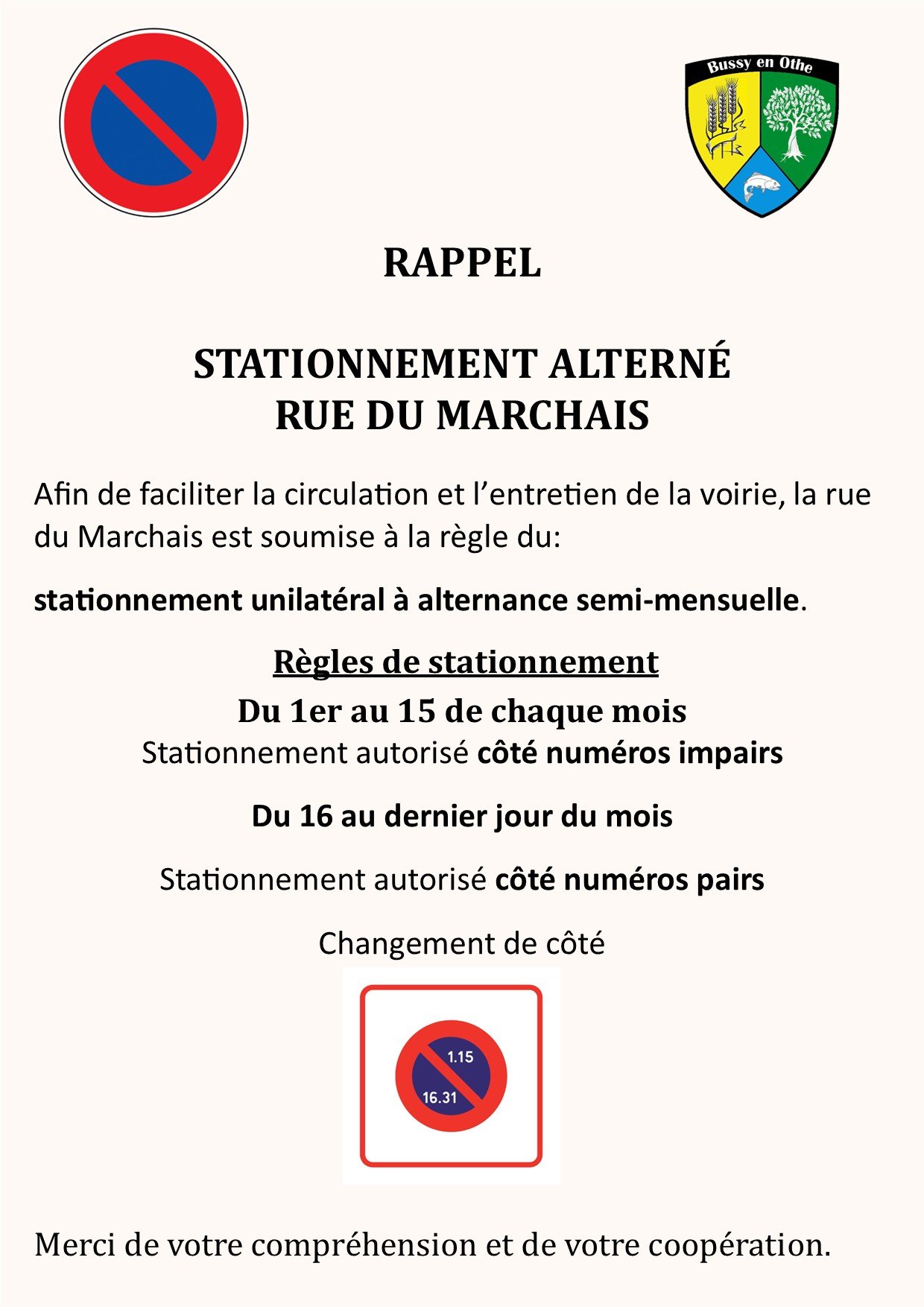 Stationnement alterné rue St Julien et Rue du Marchais