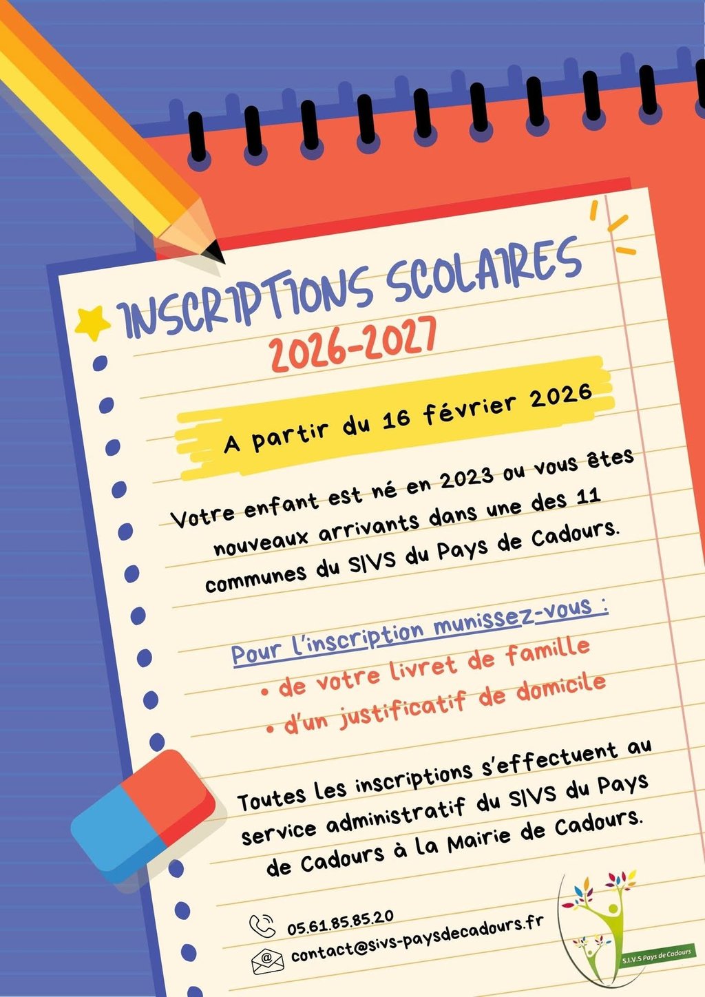 INSCRIPTIONS SCOLAIRES - RENTRĂE 2026/2027