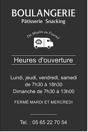 HORAIRES D'HIVER DE LA BOULANGERIE
