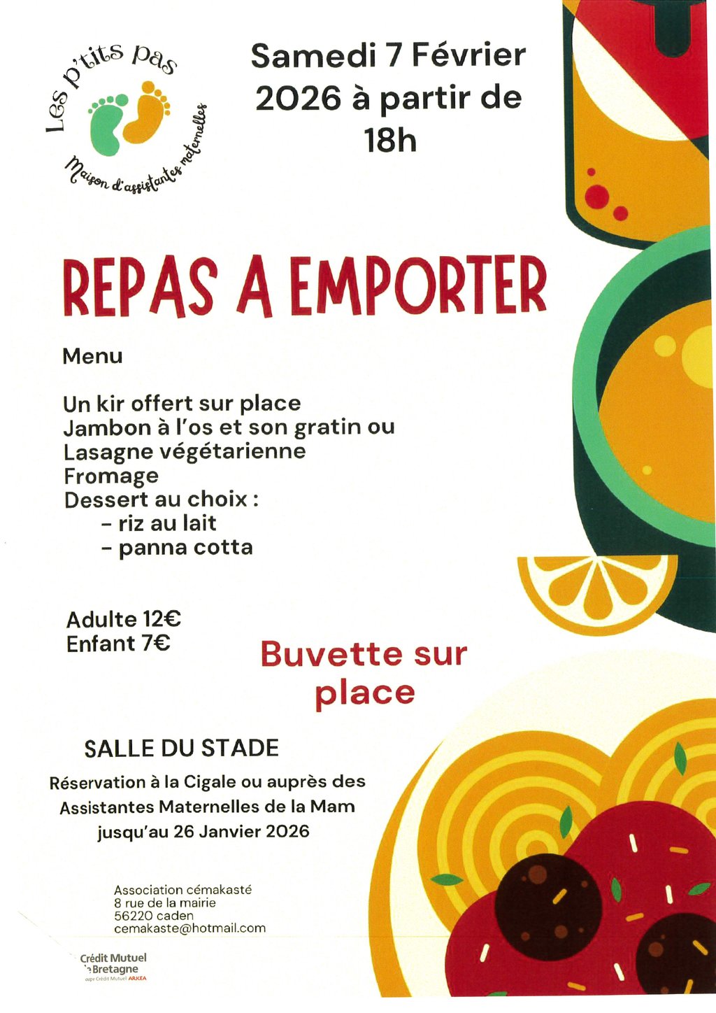 Réservation : à la Cigale ou auprès des Assistantes Maternelles de la MAM jusqu'au 26/01/2026