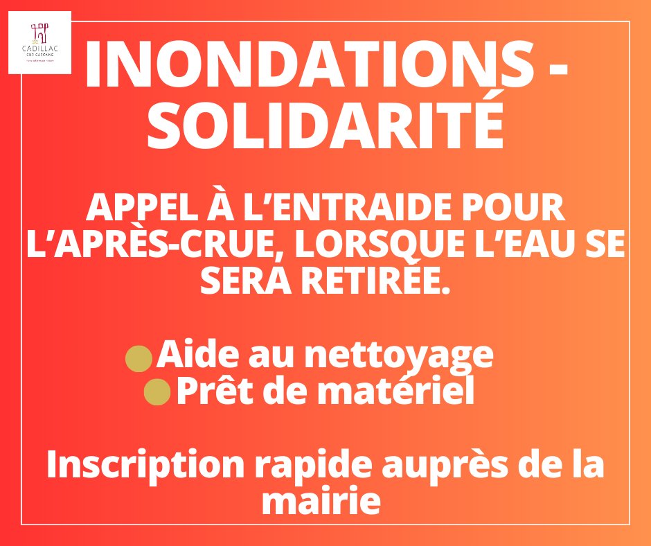 📢 Suite aux événements récents, plusieurs habitations et locaux ont été touchés. Nous lançons un appel à l’entraide pour les jours à venir afin d’aider au nettoyage.