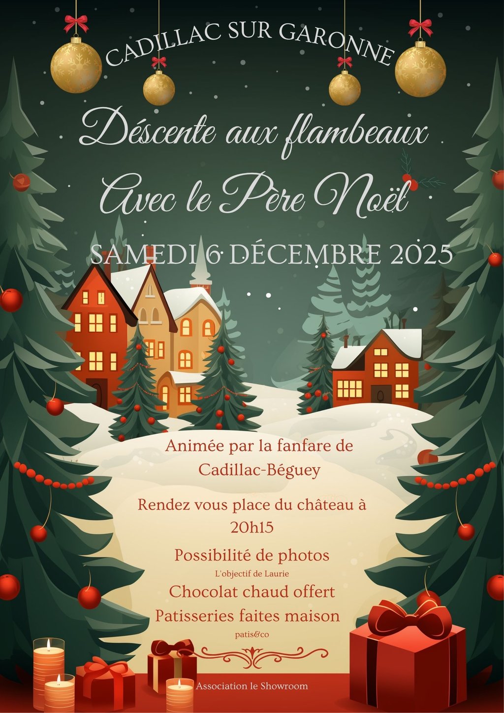 Descente aux flambeaux accompagnée par la fanfare et majorettes de Cadillac-Beguey le samedi 6 décembre 2025 à Cadillac sur Garonne.