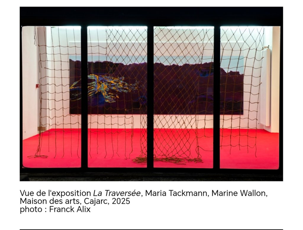 Vue de l'exposition La Traversée, Maria Tackmann, Marine Wallon, Maison des arts, Cajarc, 2025