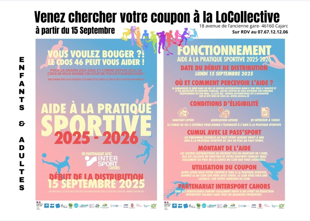 La LoCollective distribue actuellement les Aides à la Pratique Sportive.