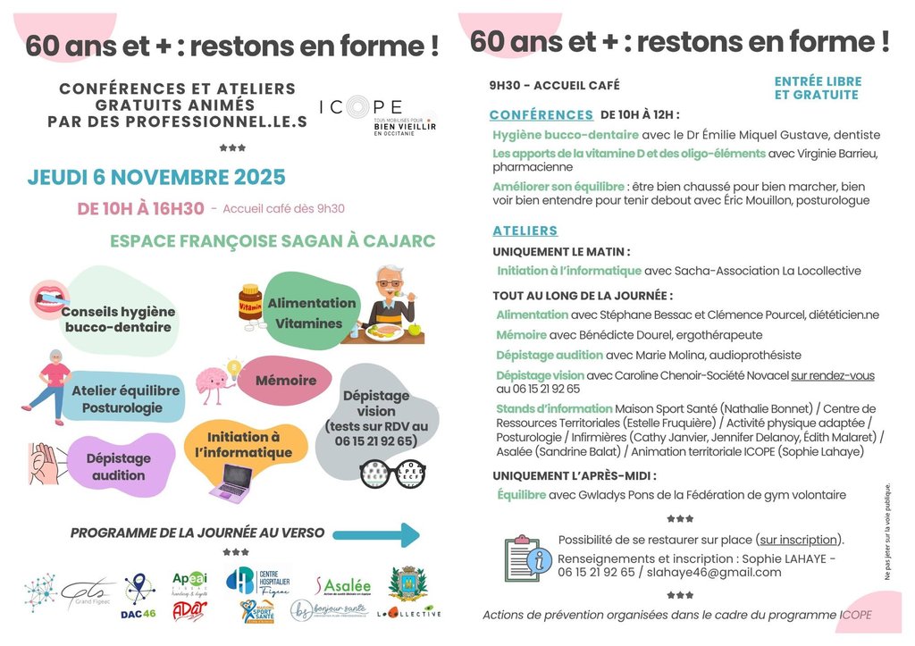 Une journée prévention santé pour les 60 ans et + organisée par la CPTS (Communauté Professionnelle Territoriale de Santé) du Grand Figeac à Cajarc