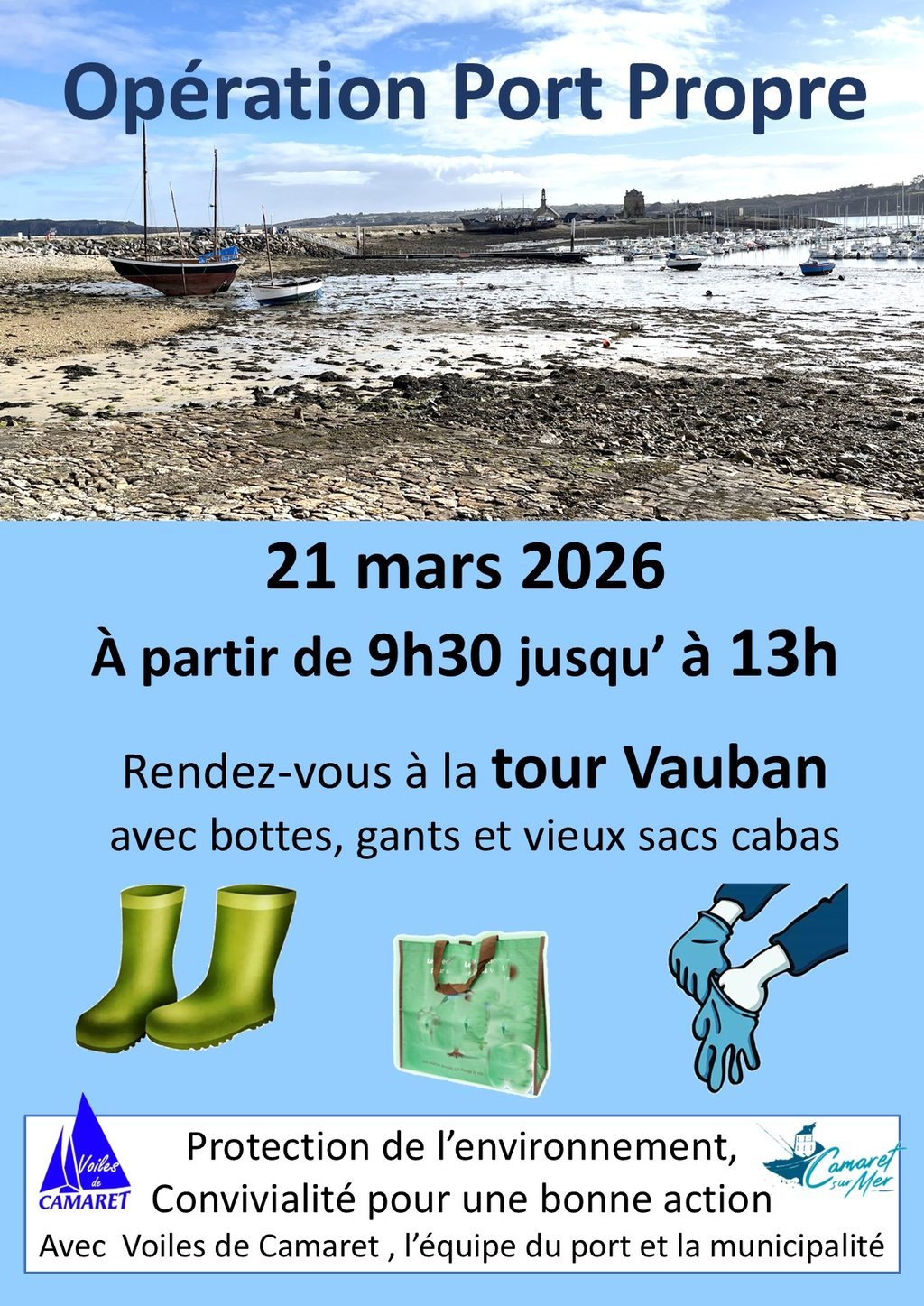 L’association Voiles de Camaret, en collaboration avec les services techniques de la mairie, organise une opération de ramassage et collecte des déchets à marée basse.
