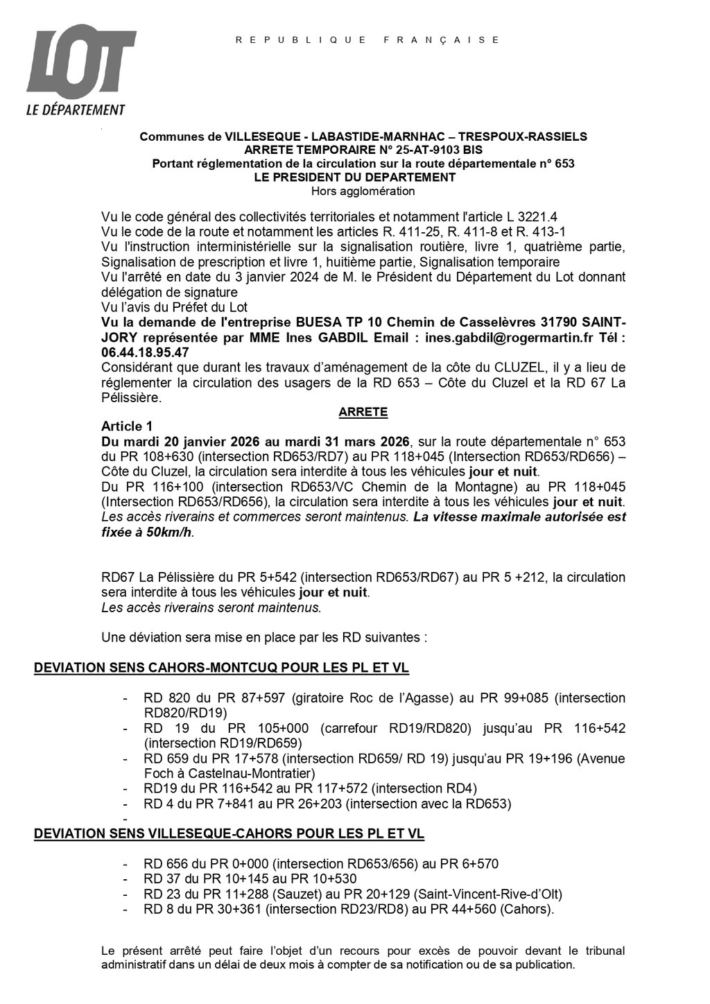 ARRETE TEMPORAIRE N° 25-AT-9103 BIS