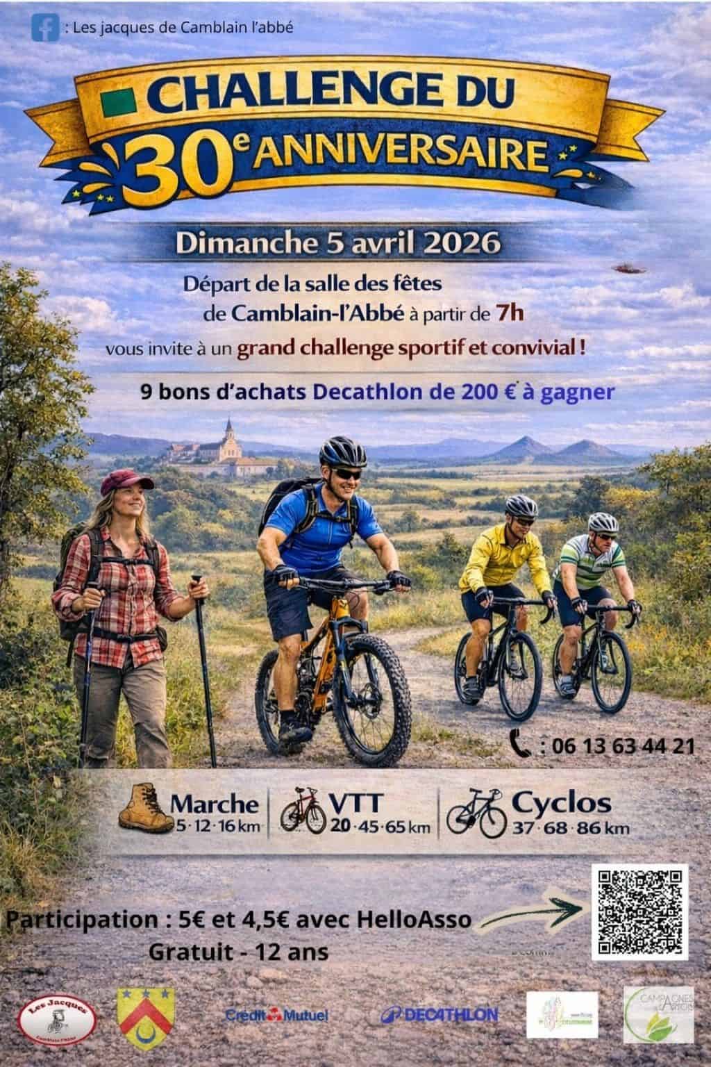 30e Challenge des Jacques : marche, VTT, cyclo & tombola !