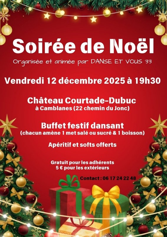 L'association Danse et Vous 33 organise sa soirée de Noël ce vendredi 12 décembre au château Courtade-Dubuc (chemin du Jonc à Camblanes et Meynac).
