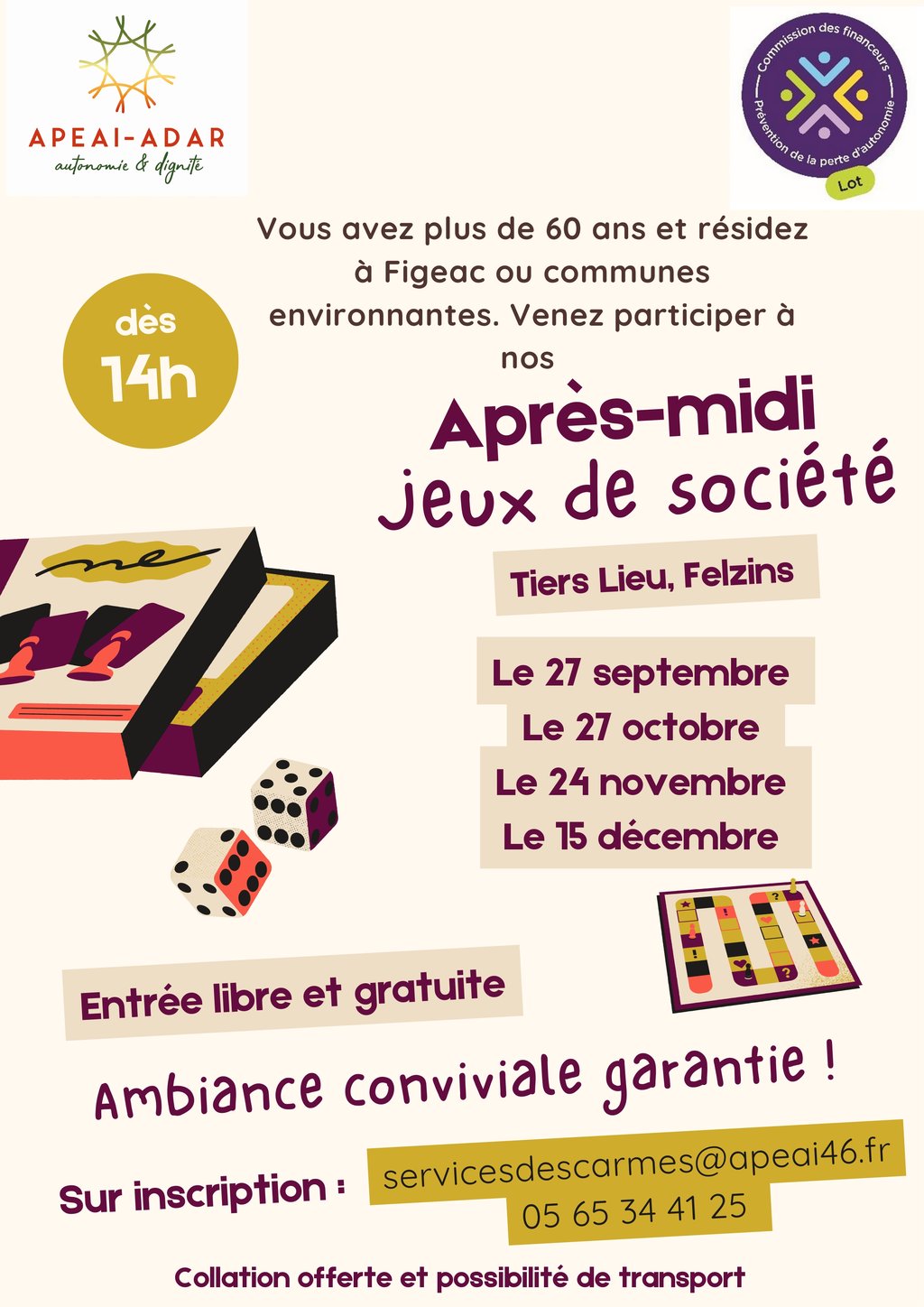 Après-midi jeux de société pour les plus de 60 ans, Tiers lieu de FELZINS à partir de 14h :
