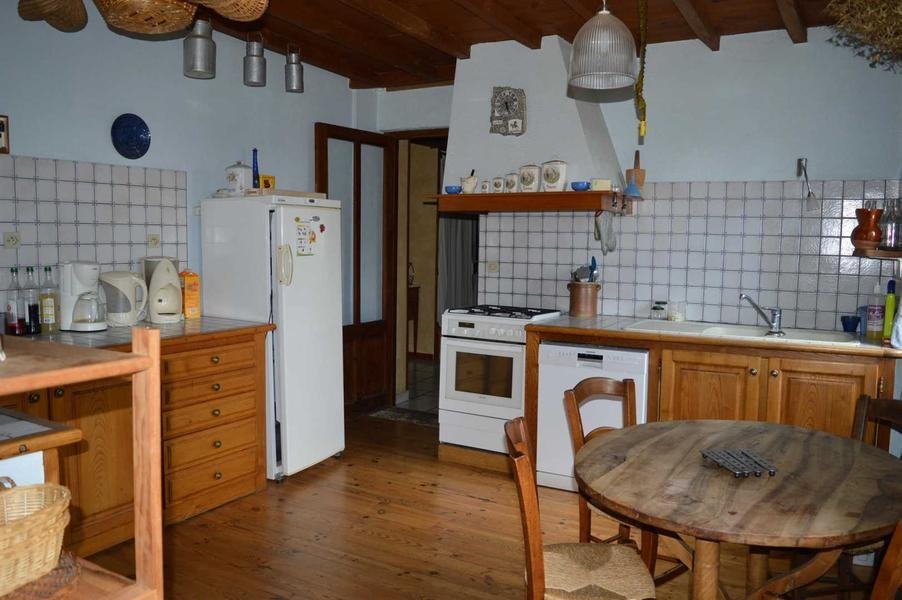 - Grande pièce à vivre (cheminée, grande table à manger, cuisine ouverte équipée), 1 salle d'eau avec douche et vasque, wc indépendant