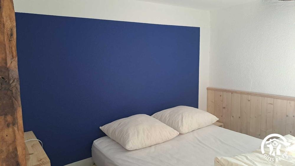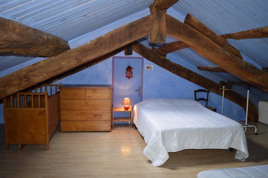 - A l'étage : chambre familiale sous les combles avec 1 lit double en 140x190cm et 3 lits simples en 90cm