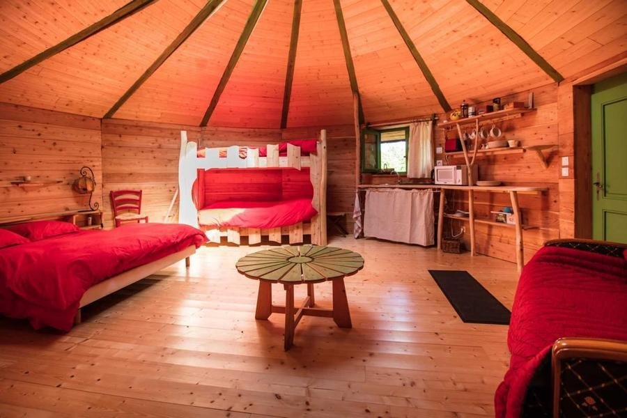Au gîte Les Ecuries de La Sabatarié, selon les séjours, l'hébergement se fera dans l'ancienne maison, la bergerie, en dortoirs, dans une yourte en bois ou bien dans le gîte du petit Jardin.