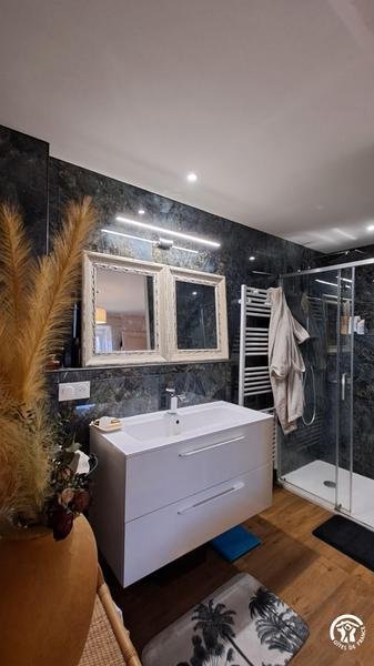 - chambre avec lit en 160x200cm et salle d'eau privative (grande vasque et douche)