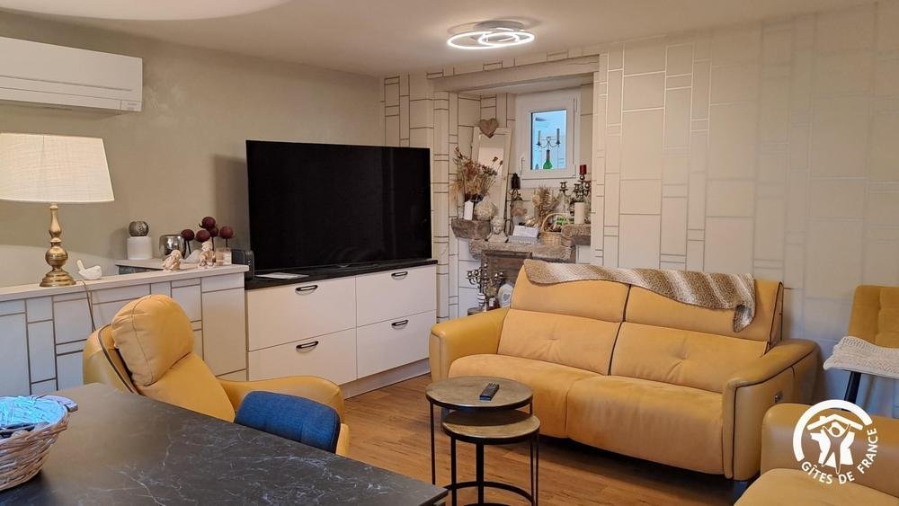 - cuisine/salon avec cuisine ouverte toute équipée, salon avec grande TV connectée, Netflix