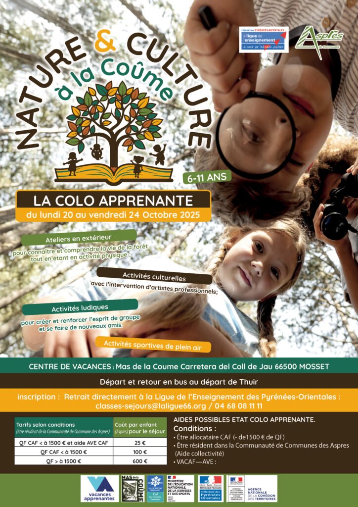 La Ligue de l’Enseignement des Pyrénées-Orientales, en partenariat avec la Communauté de Communes des Aspres, met en place une colonie apprenante lors des prochaines vacances scolaires d’automne.