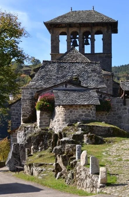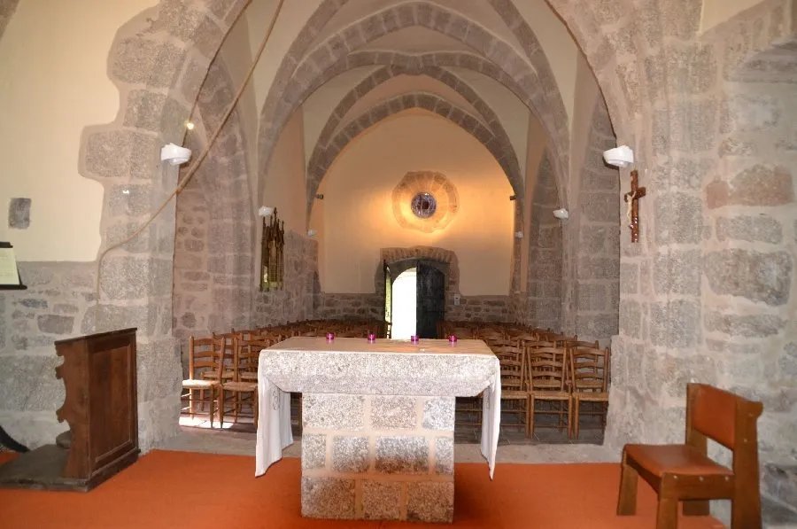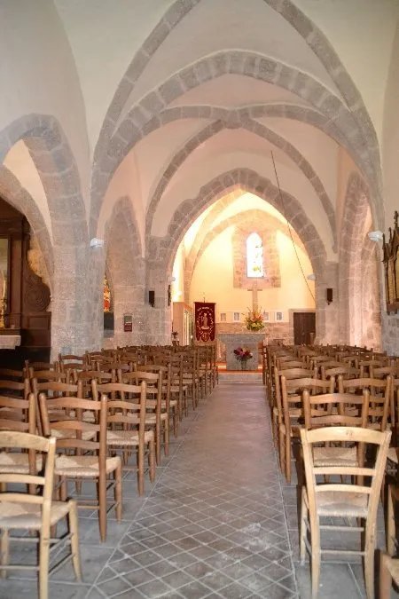l'église de style ogival construite en 1112 (2 retables du 16ème et 18ème siècle et une exposition de vêtements sacerdotaux). La visite peut se poursuivre par une promenade très agréable jusqu'à la "Pierre Branlante" ou jusqu'au pont romain en granit (13ème siècle).
