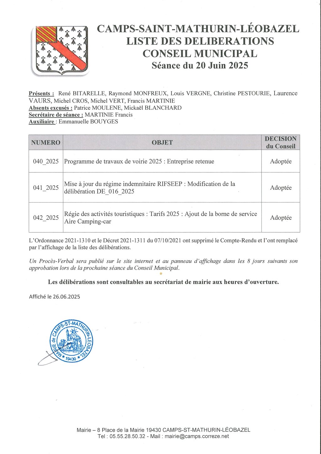 Veuillez trouver ci-joint le Procès-verbal de la séance du Conseil Municipal du 20.06.2025 approuvé lors de sa séance du 19 Septembre 2025.