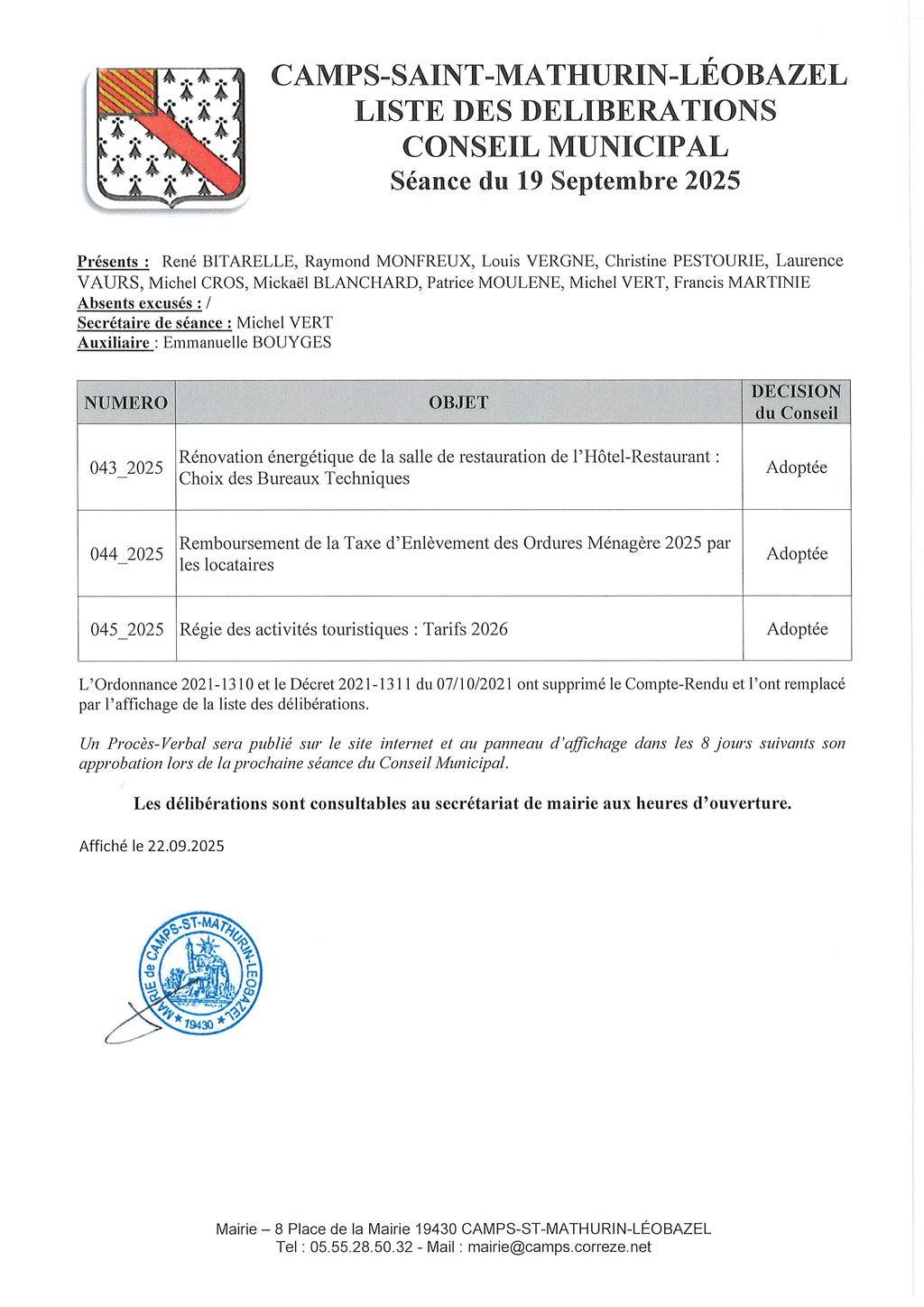 PROCES-VERBAL DU CONSEIL MUNICIPAL DU 19.09.2025